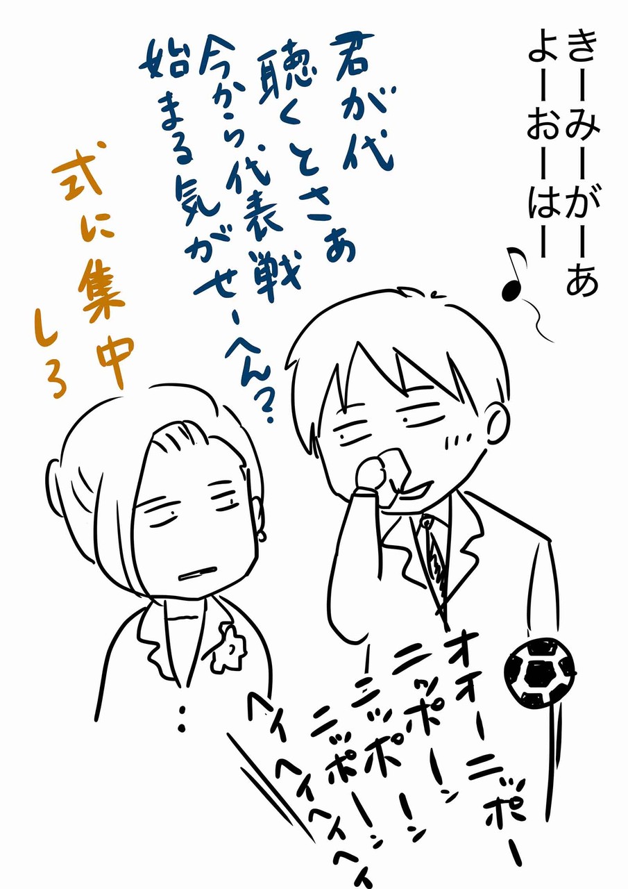 私まで円陣組んでるサッカー日本代表選手たちの絵を思い浮かべてしまいました。