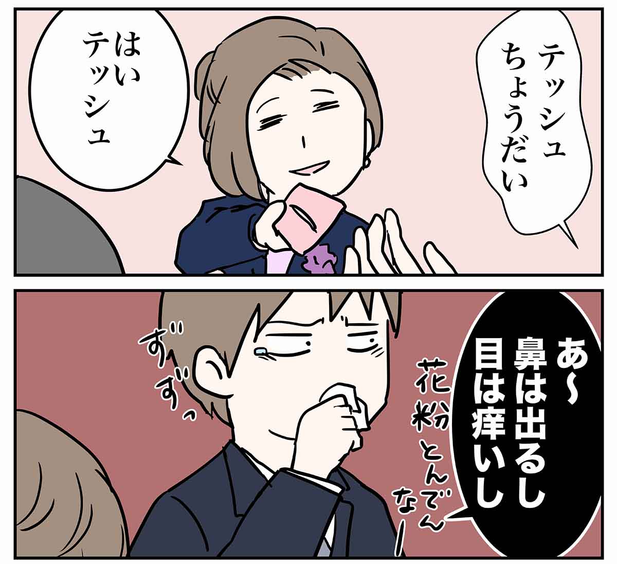 旦那は鼻にも来るけど、特に目に来るようで、春によく涙を流しています。
