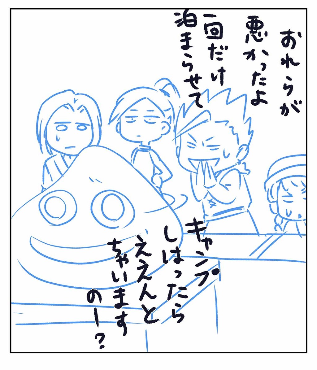 登場人物の宿屋の主人が二人ともスライムになってますね。老舗旅館の主人の方は名前とかあるんですかね?