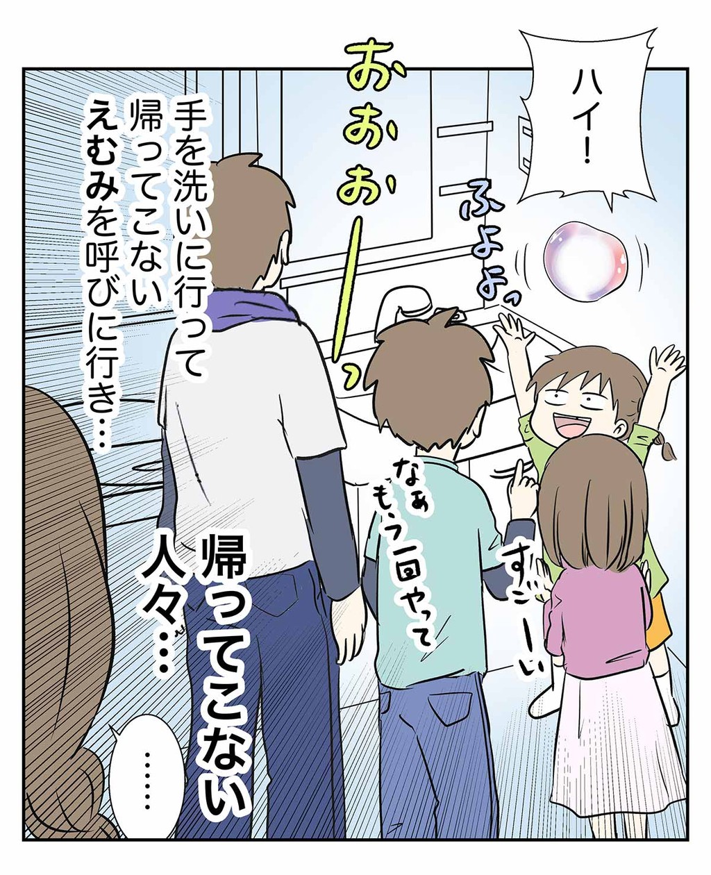 お母さんも台所用洗剤ですごい芸を披露して観客を呼びもどすんだ!