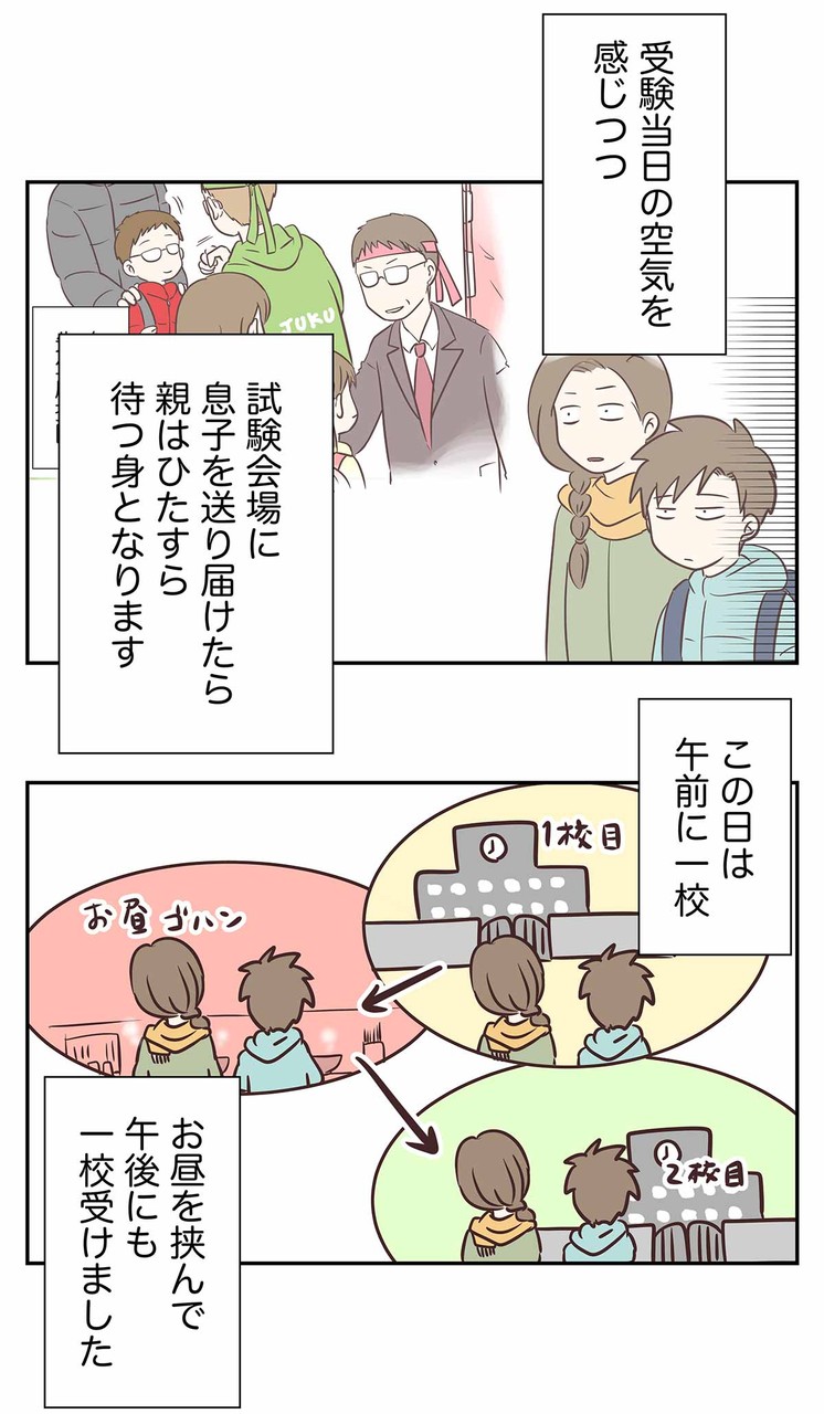 中学受験って経験がないのでよくわかりませんが、1日に午前と午後で2つ受けられるんですね!受ける息子さんの方も大変ですね。