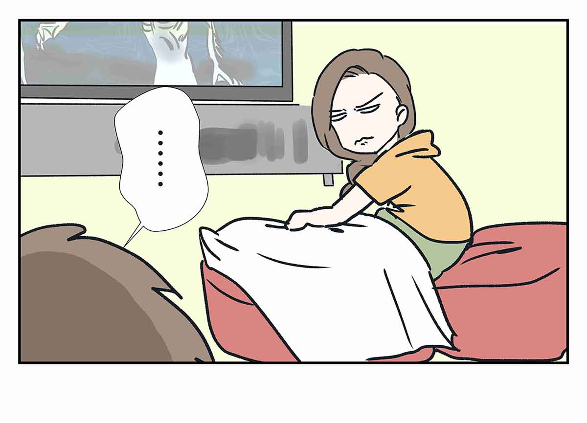 昼間、眠くなるとビーズクッションを二つ並べてベッドにします。