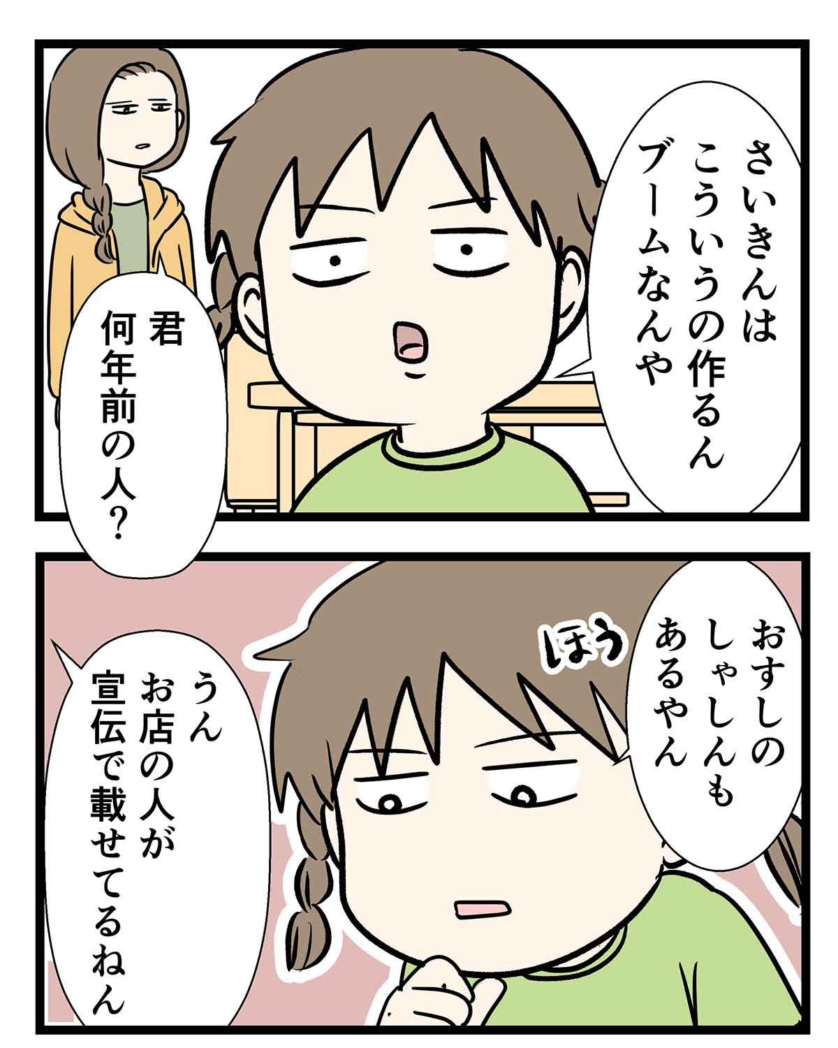 娘にツッコミを入れた作者。娘がお寿司が食べたいというので旦那にお店探しを頼む。この文章書いてる今は夜23時。お寿司のことを考えるとお腹が空いてたまらない・・・何か食べたい・・・超食べたい。